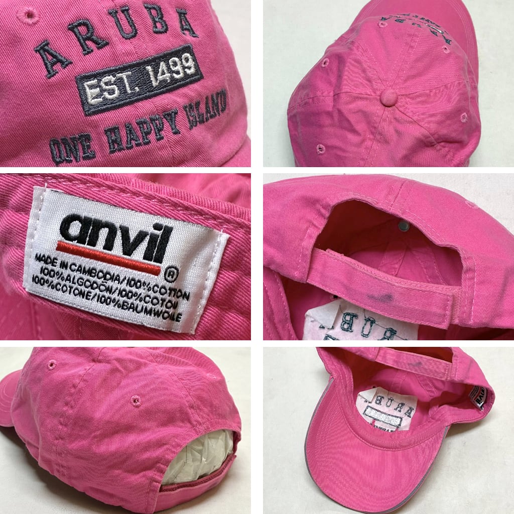 1点物◆アンビルAnvilアルバ島ピンク帽子ベースボールキャップ古着メンズレディースOKアメカジ90sストリート/スポーツ/ブランド中古363801