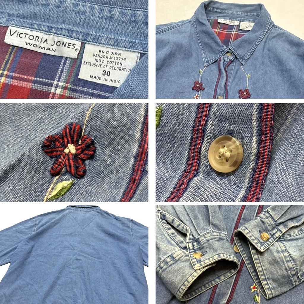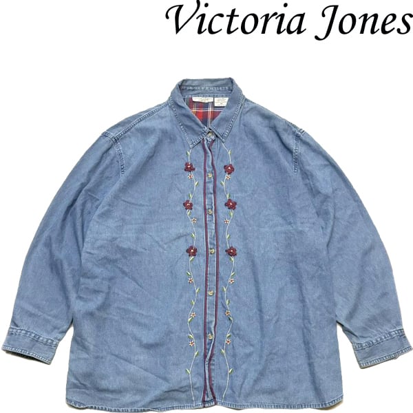 1点物◆超ビッグサイズ花柄デザイン長袖デニムシャツ古着レディースメンズOKアメカジ90sストリート/スポーツUSAブランド刺繍レトロ363448