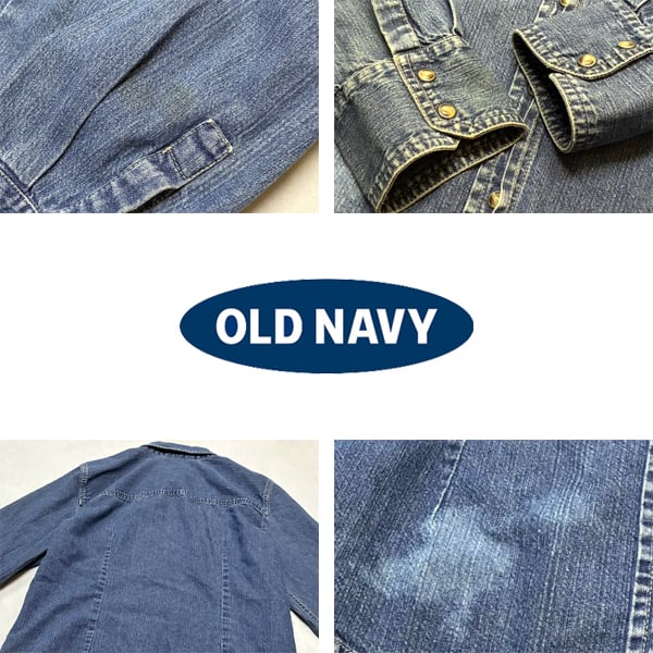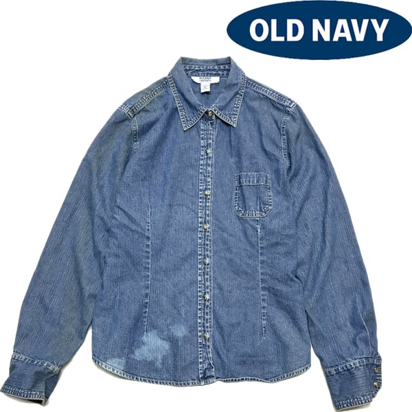 1点物◆GAP系オールドネイビー長袖デニムシャツ古着レディースLメンズOKアメカジ90sストリート/スポーツUSAブランド青ウエスタン中古363447