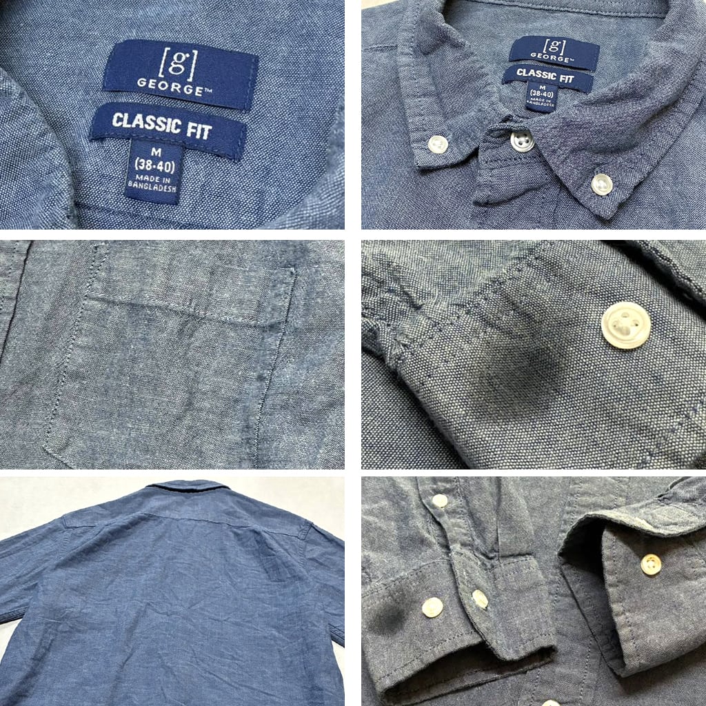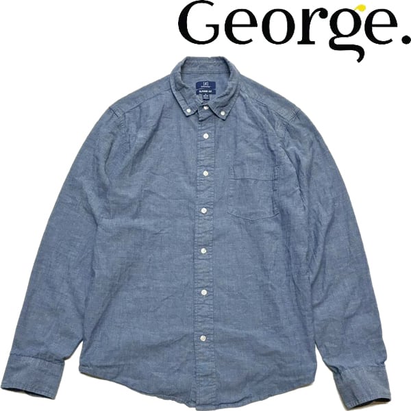 1点物◆ジョージGEORGE長袖ボタンダウンシャツ古着メンズMLレディースOKアメカジ90sストリート/スポーツUSAブランド中古ブルー無地363444