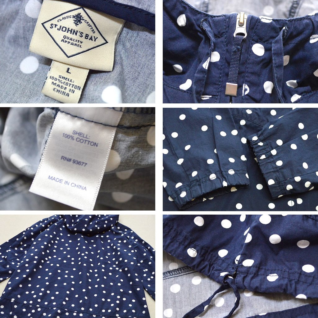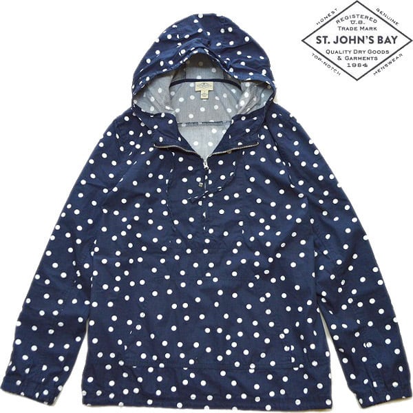 1点物◆セントジョンズベイ水玉ドット総柄パーカージャケットUS古着メンズレディースOK90sストリート/スポーツMix中古プルオーバー紺513201