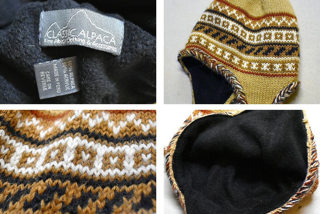 1点物◆耳当て付ペルー製アルパカ混トラッパーニットキャップ古着メンズレディースOK90sストリート/スポーツMixビーニー帽子ニット帽793849
