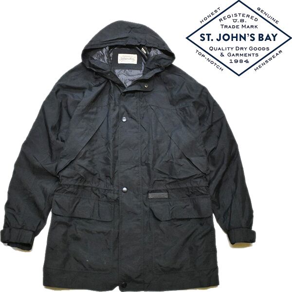 1点物◆セントジョーンズベイ黒マウンテンパーカー古着メンズXLレディースOKアウトドア90sストリートMixビッグ山ナイロンジャケット794262