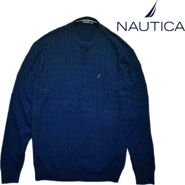 1点物◆ノーティカNAUTICA紺ケーブル編みニットセーター古着XLメンズXXLレディースOKアメカジ90sストリート/スポーツMixビッグサイズ794246