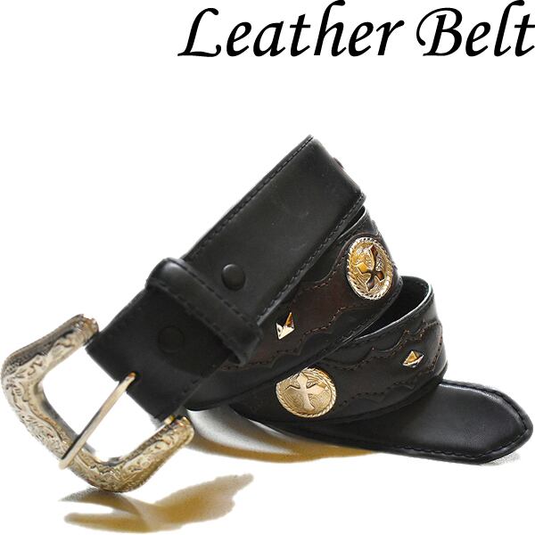1点物◆ビンテージ本革スタッズバックル付レザーベルト古着メンズ36XLレディースOKアメカジ90sストリート/スポーツMix革小物/茶黒992801