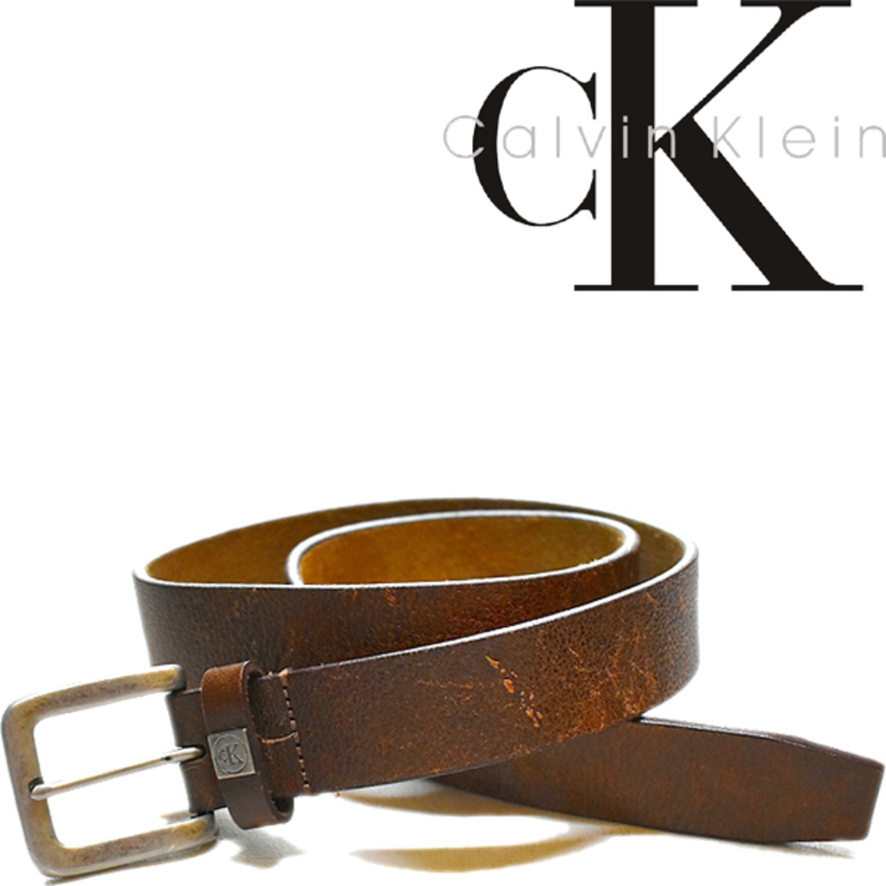 1点物◆カルバンクライン茶本革CKバックル付レザーベルト古着メンズXLレディースOKアメカジ90sストリート/スポーツMix革小物バッグ992797