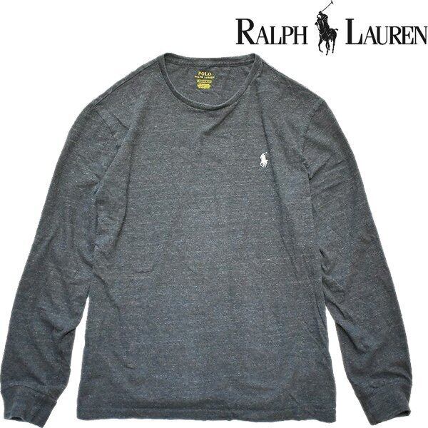1点物◆ラルフローレンPOLO刺繍ワンポイント長袖ロンTシャツ古着メンズMLレディースOKアメカジ90sストリート/スポーツMixグレー丸首783982