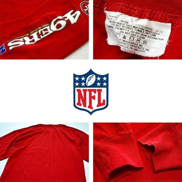 1点物◆NFLサンフランシスコ49ERS袖プリント長袖ロンTシャツ古着メンズXXLレディースOKアメカジ90sストリート/スポーツMixアメフト赤783988