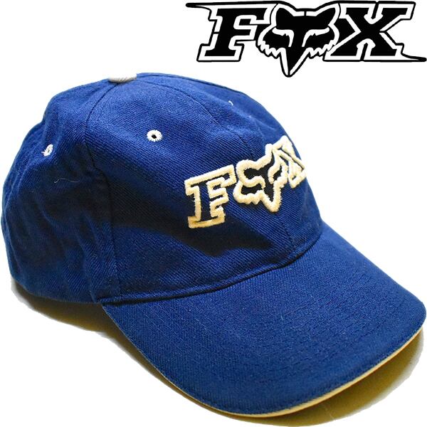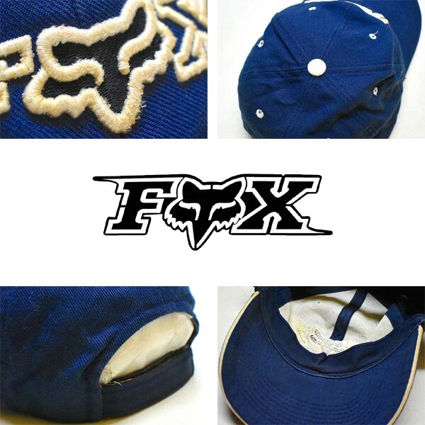 1点物◆フォックスレーシングFOX紺ロゴ刺繍ベースボールキャップ古着メンズレディースOKアメカジ90sストリート/スポーツMix帽子/中古784082