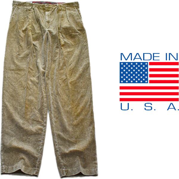 1点物◆USA製ビンテージ3タック太畝コーデュロイパンツ古着メンズ38XXLレディースOKアメカジ90sストリート/ワークワイドストレート784086