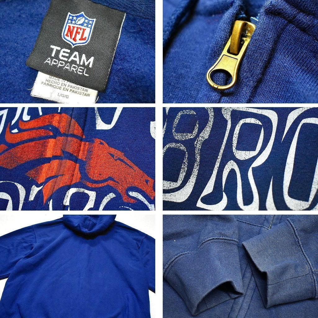 1点物◆NFLブロンコス紺ジップアップパーカー古着メンズXLレディースOKアメカジ90sストリート/スポーツ/スウェット/トレーナー中古784214