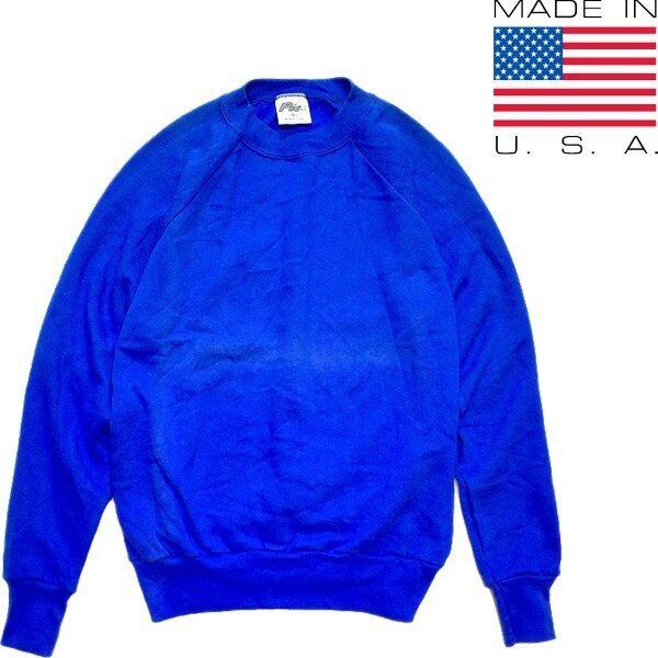 1点物◆USA製ビンテージ青無地プルオーバースウェット古着メンズSMレディースOKアメカジ90sストリートMixスポーツMixトレーナー中古784221