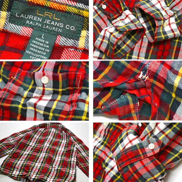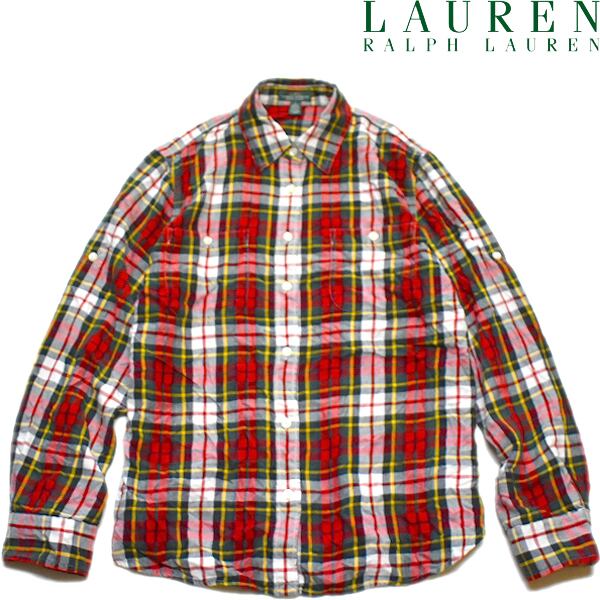 1点物◆ラルフローレンPOLO長袖チェックシャツ古着レディースL/XLメンズOKアメカジ90sストリート/スポーツMixマチ付ネルシャツ中古784145