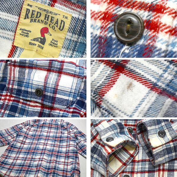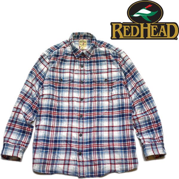 1点物◆レッドヘッド白紺ヘビーネルシャツ長袖チェックシャツ古着メンズXLレディースOKアメカジ90sストリート/ワークハンティング784158