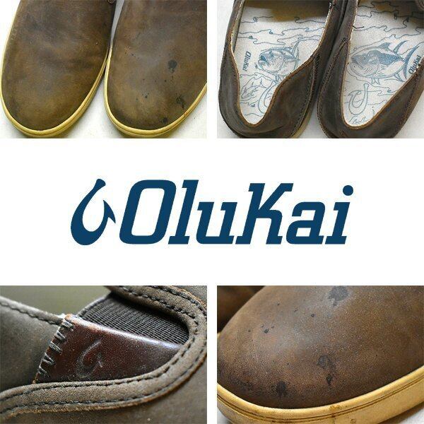 1点物◆オルカイOlukaiスリッポン茶レザースニーカー古着メンズ29レディースOKアメカジ90sストリート/スポーツMixシューズ靴ハワイ784252
