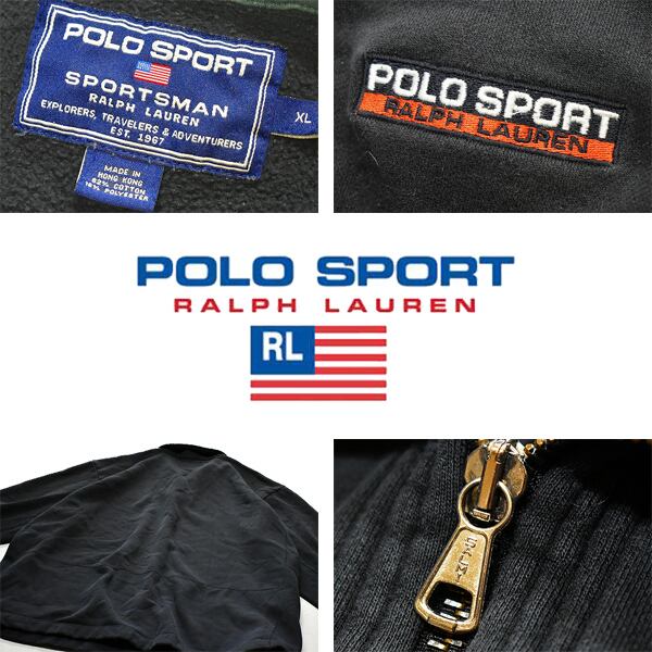 1点物◆ラルフPOLOポロスポーツ黒ハーフジップスウェット古着メンズXLレディースOKアメカジ90sストリート/スポーツMixプルオーバー784298