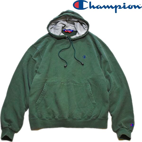1点物◆チャンピオン目玉スウェットパーカー古着メンズL/XLレディースOKアメカジ90sストリート/スポーツトレーナー中古オリーブ深緑784305