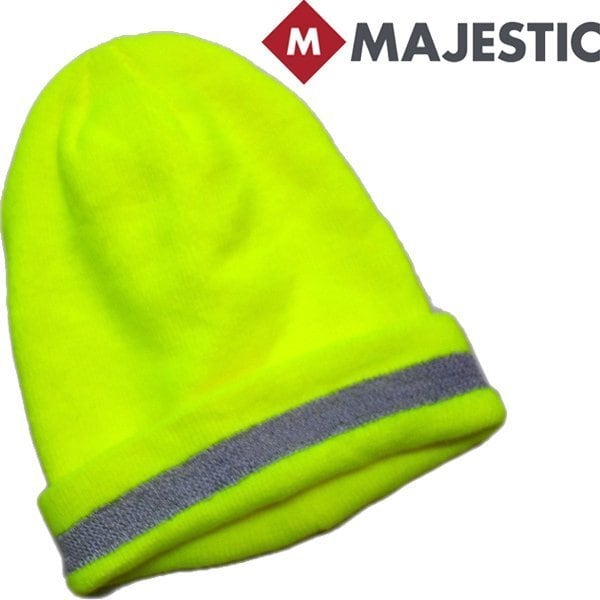 1点物◆MAJESTIC蛍光リフレクター反射板ニット帽/古着メンズレディースOKアメカジ90sストリート/スポーツニットキャップ帽子ビーニー784337