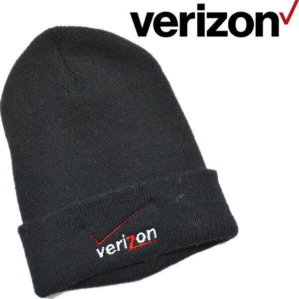 1点物◆VERIZON企業ロゴ刺繍ニット帽/黒/古着メンズレディースOKアメカジ90sストリート/スポーツMixニットキャップ帽子ビーニー中古784338