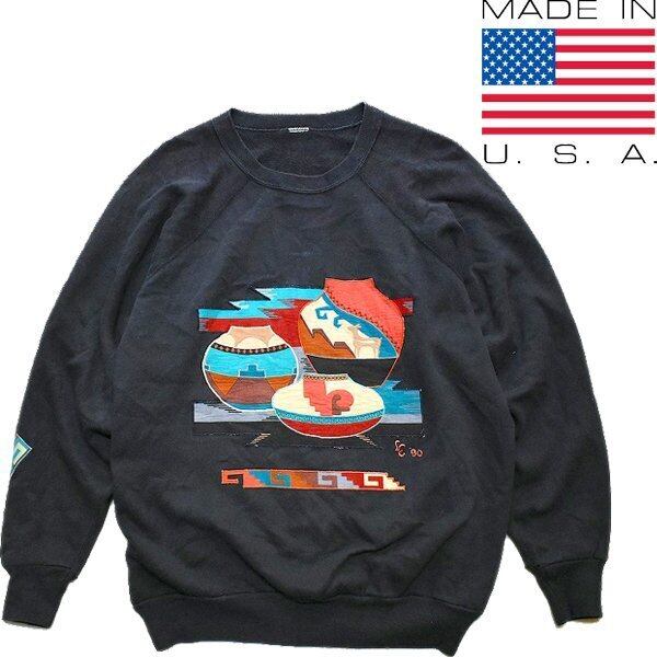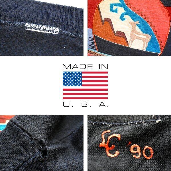 1点物◆USA製ビンテージ黒アニマル柄スウェット古着メンズXLレディースOKアメカジ90sストリートスポーツMixビッグサイズ/トレーナー784420