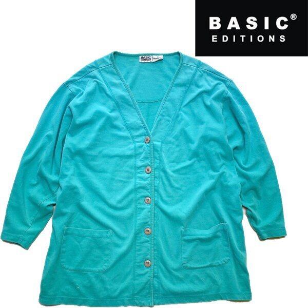 1点物◆USAブランド無地スウェットカーディガン古着レディースメンズOKアメカジ90sストリートスポーツMixトレーナー/ブルーグリーン784429