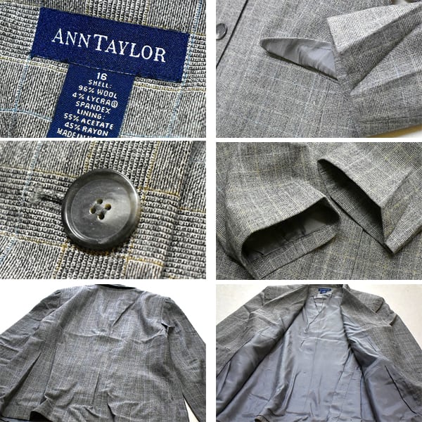 1点物◆ANN TAYLOR3つボタンウールテーラードジャケット古着メンズレディースOKアメカジ90sストリート中古ブレザー/スーツ灰グレー784449
