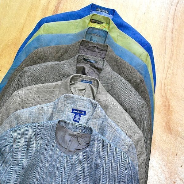 インパクト◎のブレザースタイル、 さり気ない杉綾織りヘリンボーン。