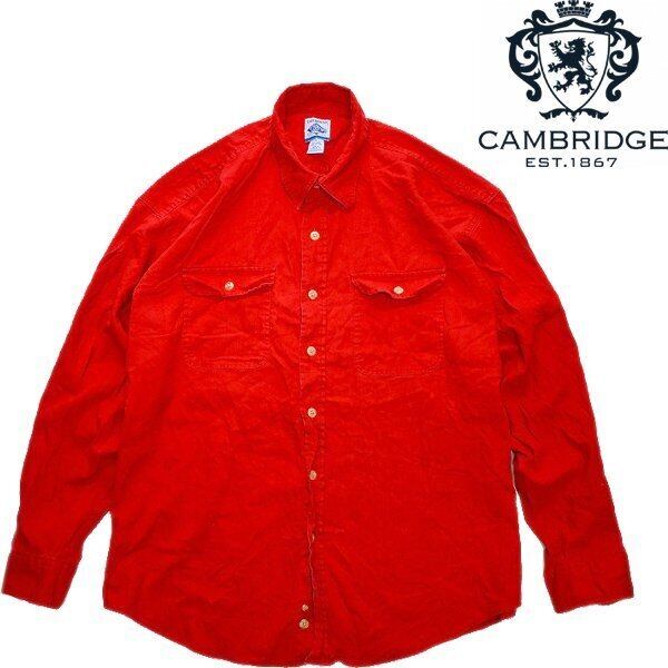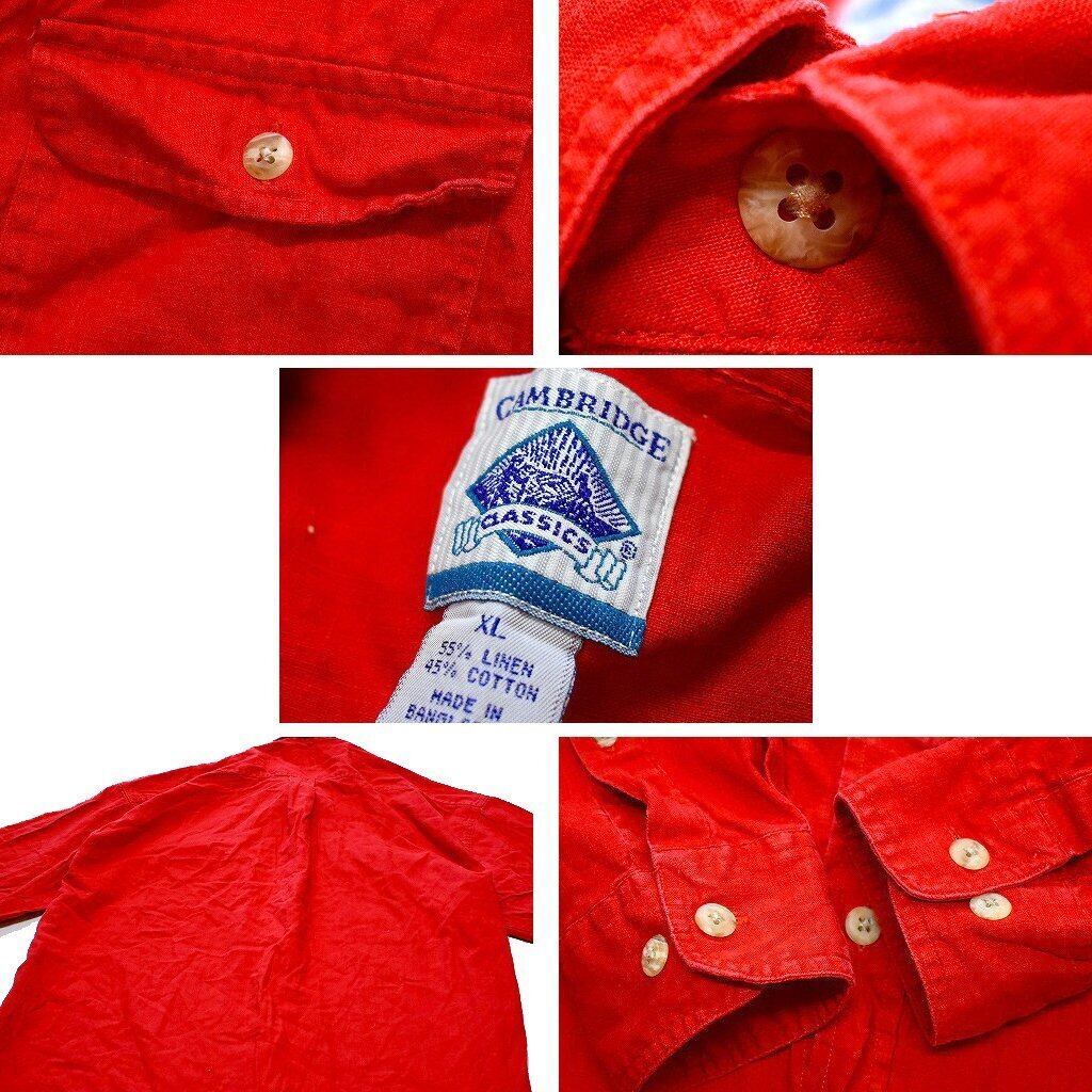 1点物◆ビッグサイズXL長袖/赤無地リネンシャツ古着メンズXXLレディースOKアメカジブランド90sストリート/スポーツMixキャンブリッジ784535