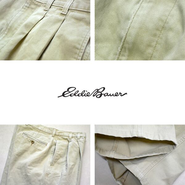 1点物◆エディーバウアー2タックチノパン古着メンズ32レディースOKアメカジブランド90sストリート/ワイドパンツ/ベージュスラックス784481
