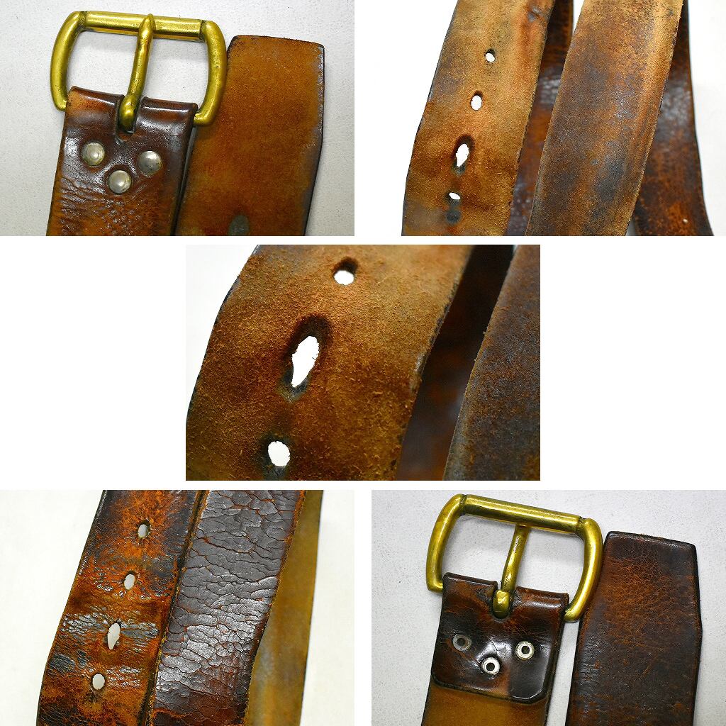 1点物◆雰囲気系レトロ金バックル付き茶革レザーベルト古着メンズXLレディースOKアメカジ90sストリート/スポーツMixブランド太め中古784497