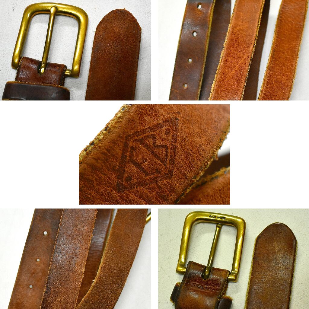 1点物◆エディーバウアーEB真鍮金バックル付き茶革レザーベルト古着メンズL/XLレディースOKアメカジ90sストリート/スポーツMixレトロ784496