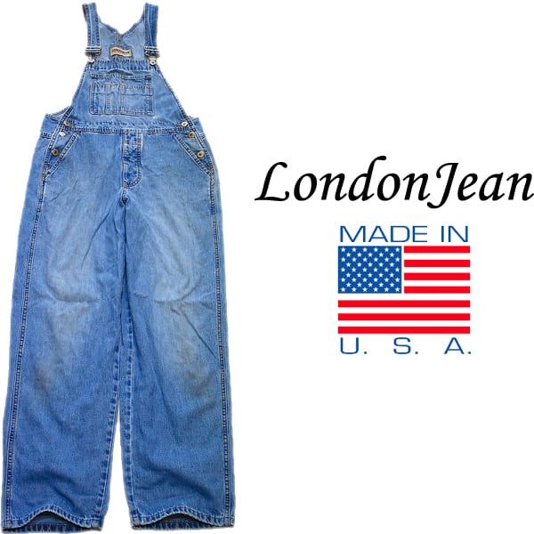 1点物◆USA製LONDONJeanデニムオーバーオール古着メンズXSレディースOKアメカジ90sストリートMixワークペインターパンツ中古ジーンズ784513