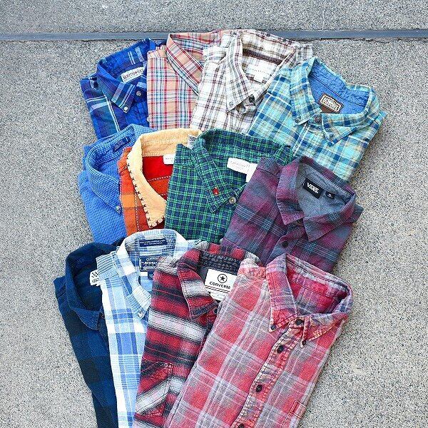 1点物◆イタリア企画ボタンダウン長袖ネルシャツ/チェックシャツ古着メンズXLレディースOKアメカジ90sストリート/スポーツMix中古/紺784570