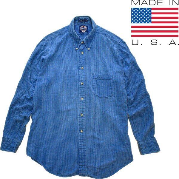 1点物◆USA製ビンテージ長袖ネルシャツ青チェックシャツ古着メンズXLレディースOKアメカジ90sストリート/スポーツMixボタンダウン784573
