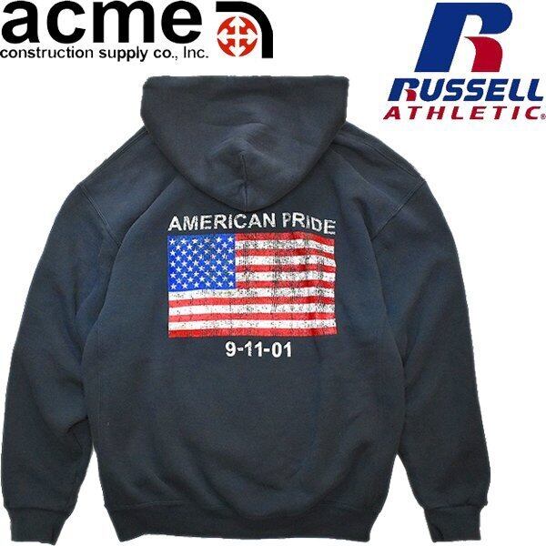 1点物◆9.11星条旗バックプリント黒スウェットパーカー古着メンズXL/XXLレディースOKアメカジ90sストリート/スポーツMixトレーナー784577