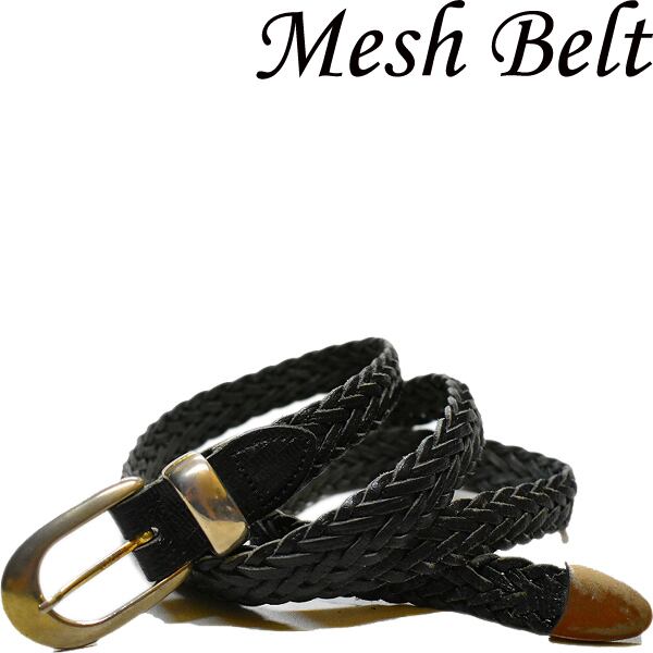 1点物◆ビッグサイズ黒バックル付き本革レザーメッシュベルト古着メンズXL/XXLレディースOKアメカジ90sストリート/スポーツMixレトロ784631