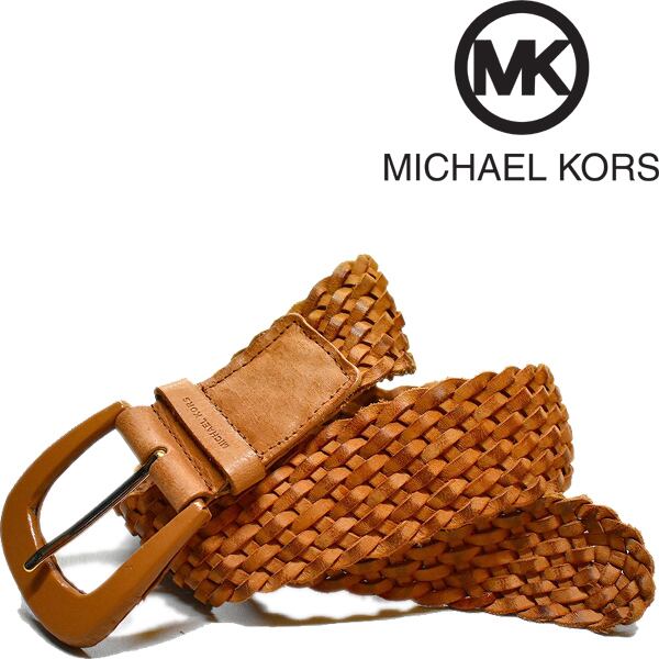 1点物◆マイケルコースMKバックル付き茶革レザーメッシュベルト古着メンズMレディースOKアメカジブランド90sストリート/スポーツMix784627
