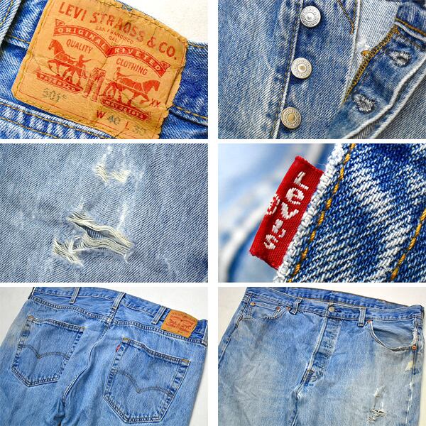 1点物◆Levisリーバイス501ダメージジーンズ古着メンズ40レディースOKアメカジ90sストリート/スポーツMixデニムパンツ中古ブランドXL784644