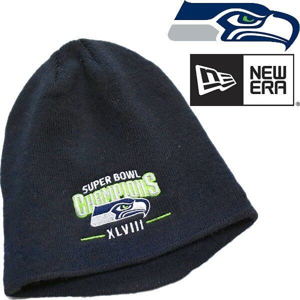 1点物◆ニューエラNFLシーホークス紺ニット帽ニットキャップ古着メンズレディースOKアメカジ90sストリートMixビーニー帽子アメフト784707
