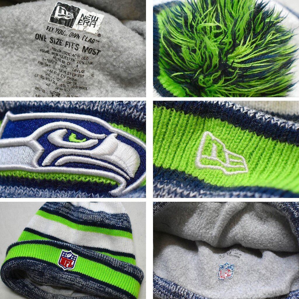 1点物◆ニューエラNEシーホークスNFLボンボンニット帽/古着メンズレディースOKアメカジ90sストリートMixビーニー帽子ニットキャップ784709