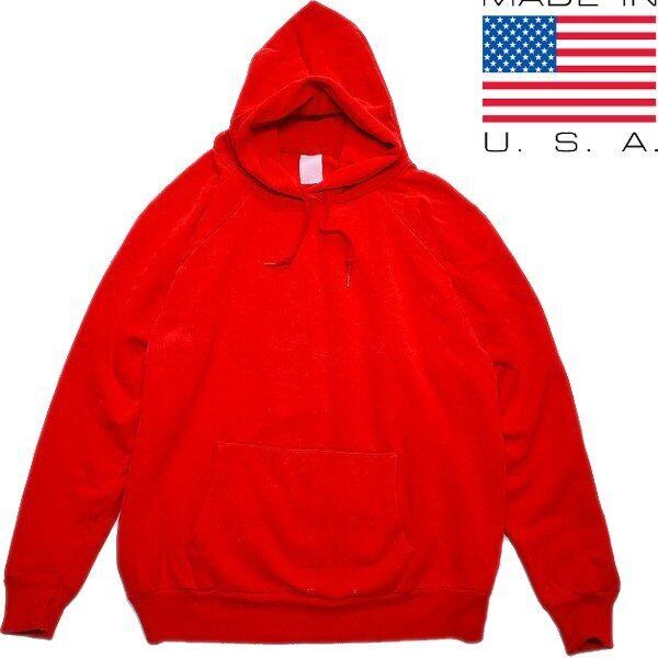 1点物◆USA製ビンテージ赤無地スウェットパーカー古着メンズXLレディースOKアメカジブランド90sストリート/スポーツ/トレーナー中古784715