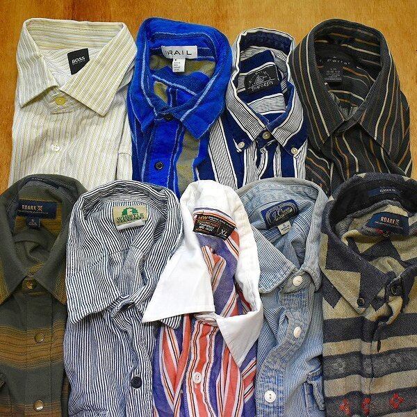 1点物◆70sビンテージJCペニー長袖ストライプシャツ古着メンズXL/XXLレディースOKアメカジブランド90sストリート/スポーツMix柄/派手784736