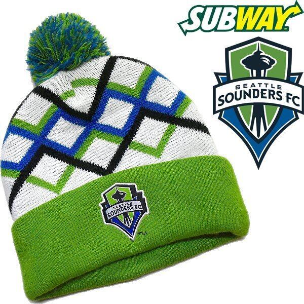 1点物◆シアトルサウンダーズFCサブウェイ企業ボンボンニット帽/古着メンズレディースOK90sストリート/スポーツMixニットキャップ緑784918