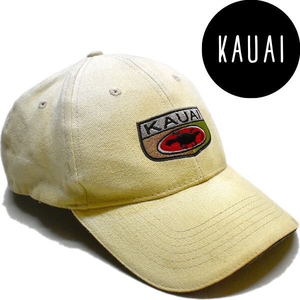 1点物◆ハワイKAUAIロゴ刺繍ベースボールキャップ帽子ベージュ古着メンズレディースOKアメカジ90sストリート/スポーツMixカーキ野球784950