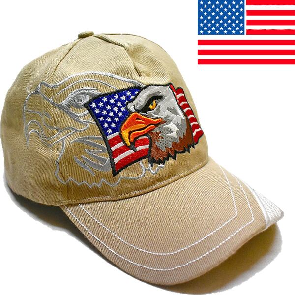 1点物◆おしゃれ星条旗アニマルロゴ刺繍ベースボールキャップ帽子/古着メンズレディースOKアメカジ90sストリート/スポーツ茶ベージュ784945