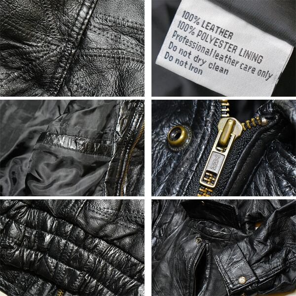 1点物◆パッチワークKINGスタジャンブルゾン黒レザージャケット古着メンズレディースOKアメカジ90sストリート/スポーツ革ジャン中古784983