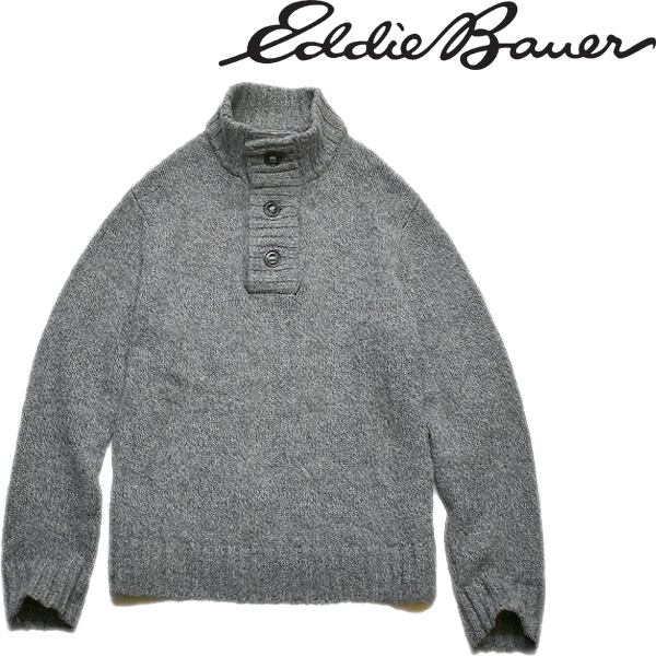 1点物◆エディーバウアーEB灰ヘンリーネックセーター古着メンズMLレディースOKアメカジ90sストリートスポーツ/アウトドアUSAブランド784990