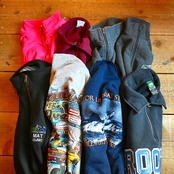 素材: 50%コットン、50%ポリ 色: 黒、 首元ハーフジップ。