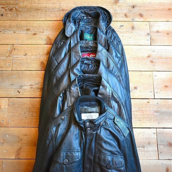1点物◆True Grit黒レザージャケットコート古着メンズXLレディースOKアメカジ90sストリート/スポーツ中古ブルゾン革ジャンスタジャン785007