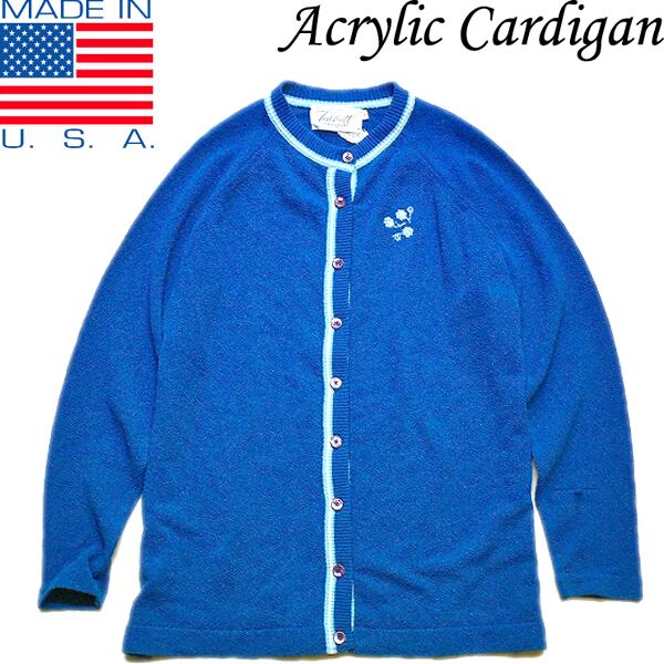 1点物◆USA製ビンテージ花柄アクリルカーディガン古着メンズレディースOKアメカジ90sストリート/スポーツ/ニットセーター/ブランド785026